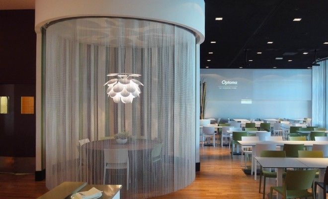 Sada je riječ o dekorativnim metalnim zavjesama. Izgledaju poput lanaca, u interijeru djeluju poput mreže. Izrađene su galvaniziranog aluminija. Zbog svojih karakteristika pogodne su za interijere i eksterijere. Koristili smo ih prilikom uređenja zatvorenog bazenskog kompleksa u Toplicama sveti Martin na Muri. Najmoderniji dizajn bazenskog kompleksa, dizajniran je od strane arhitekata Rena i Vesne Vrbanca i talijanskog arhitekta Maurizia Favette Interijer sa bazenima sa termomineralnom vodom, radi visokih temperatura i velikog postotka vlage, zahtijeva poseban odabir materijala. Metalne zavjese i paneli pokazali su se kao idealno rješenje.